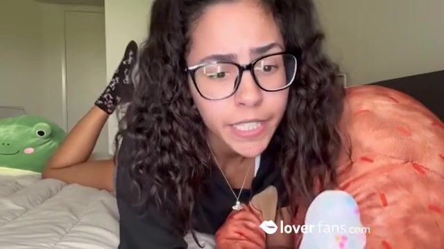 Sexy petite Latina e-girl sucking her dildo